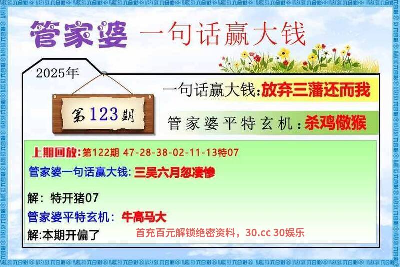 123期〖解管家婆〗港彩资料